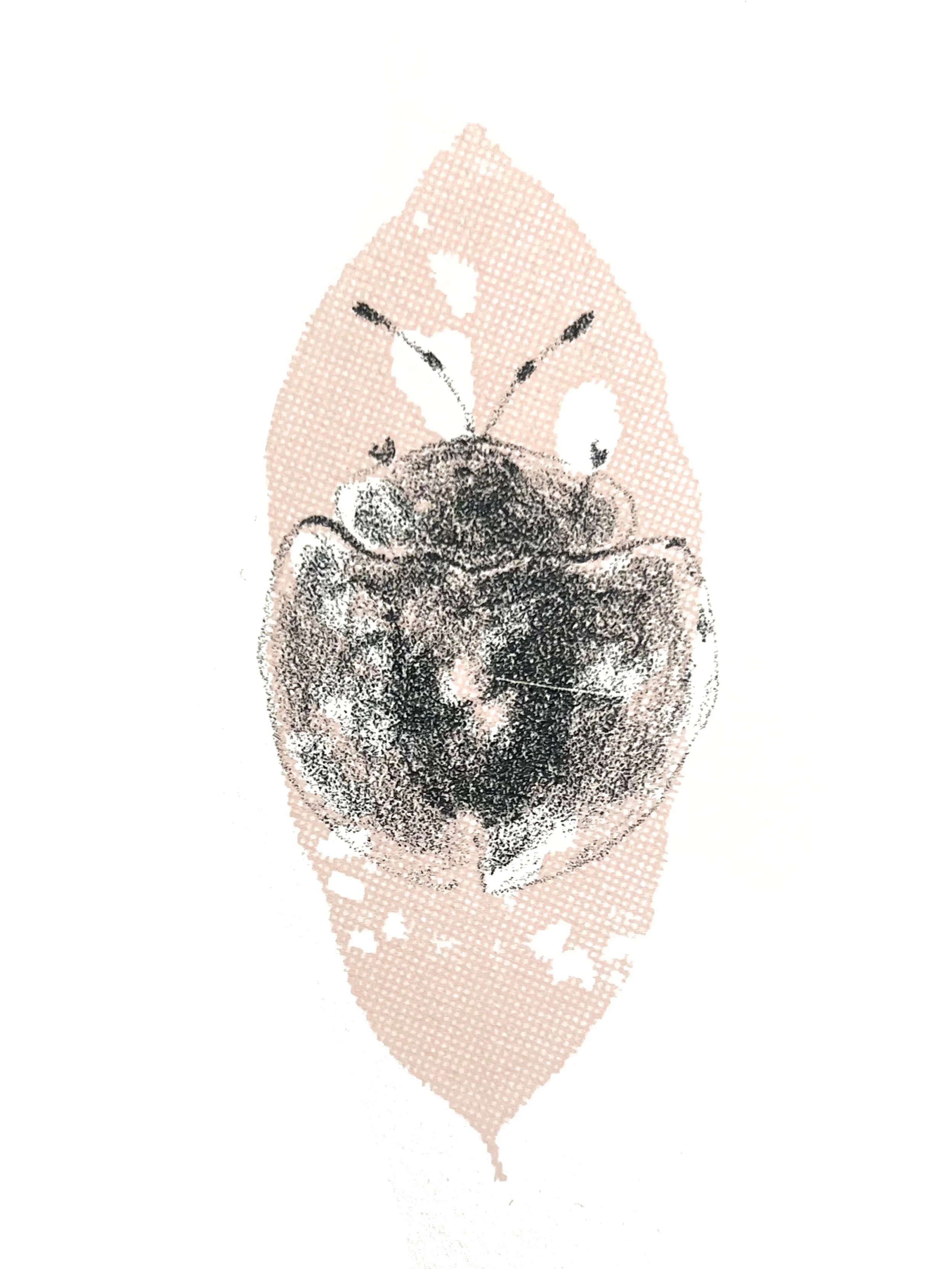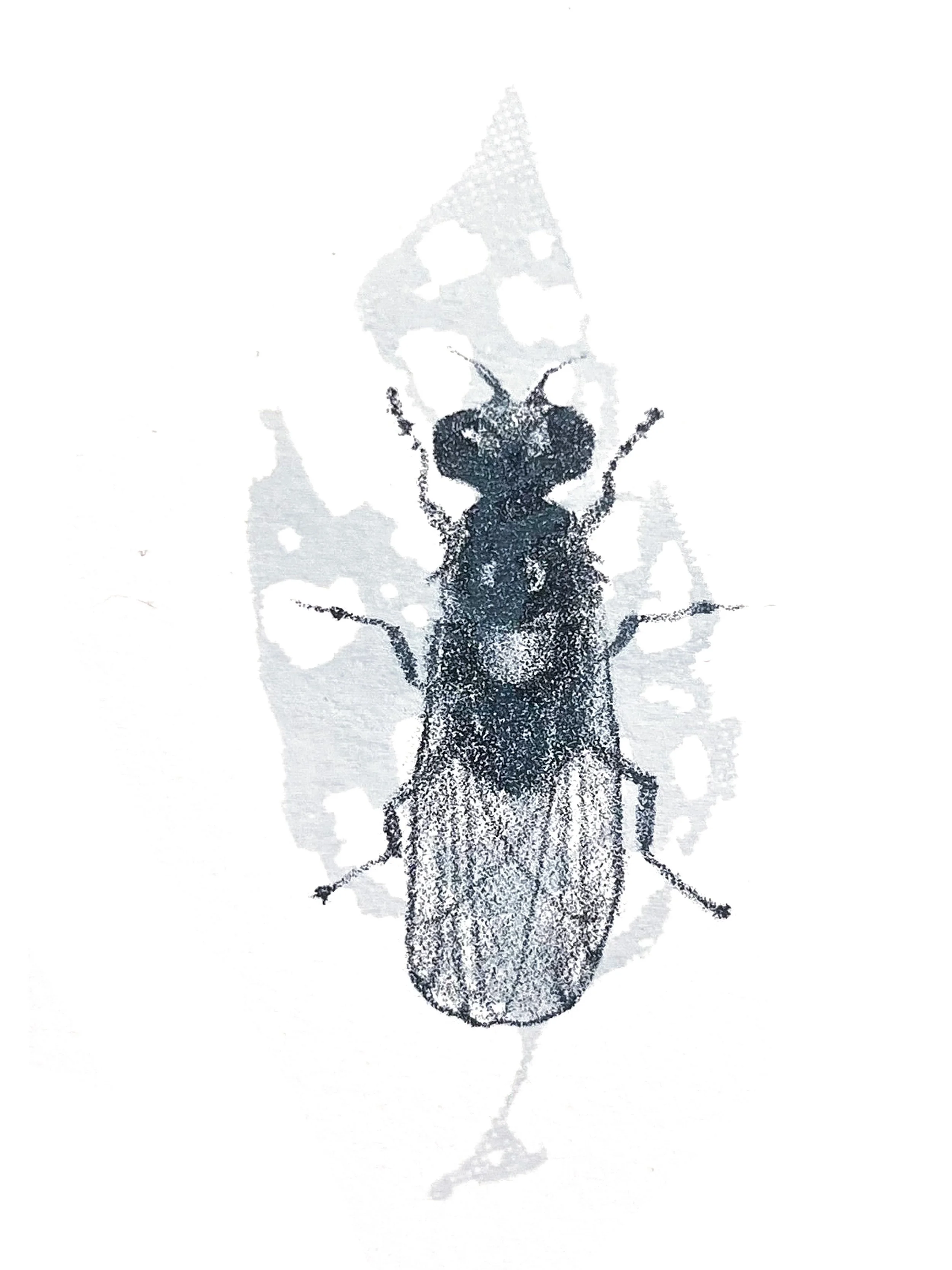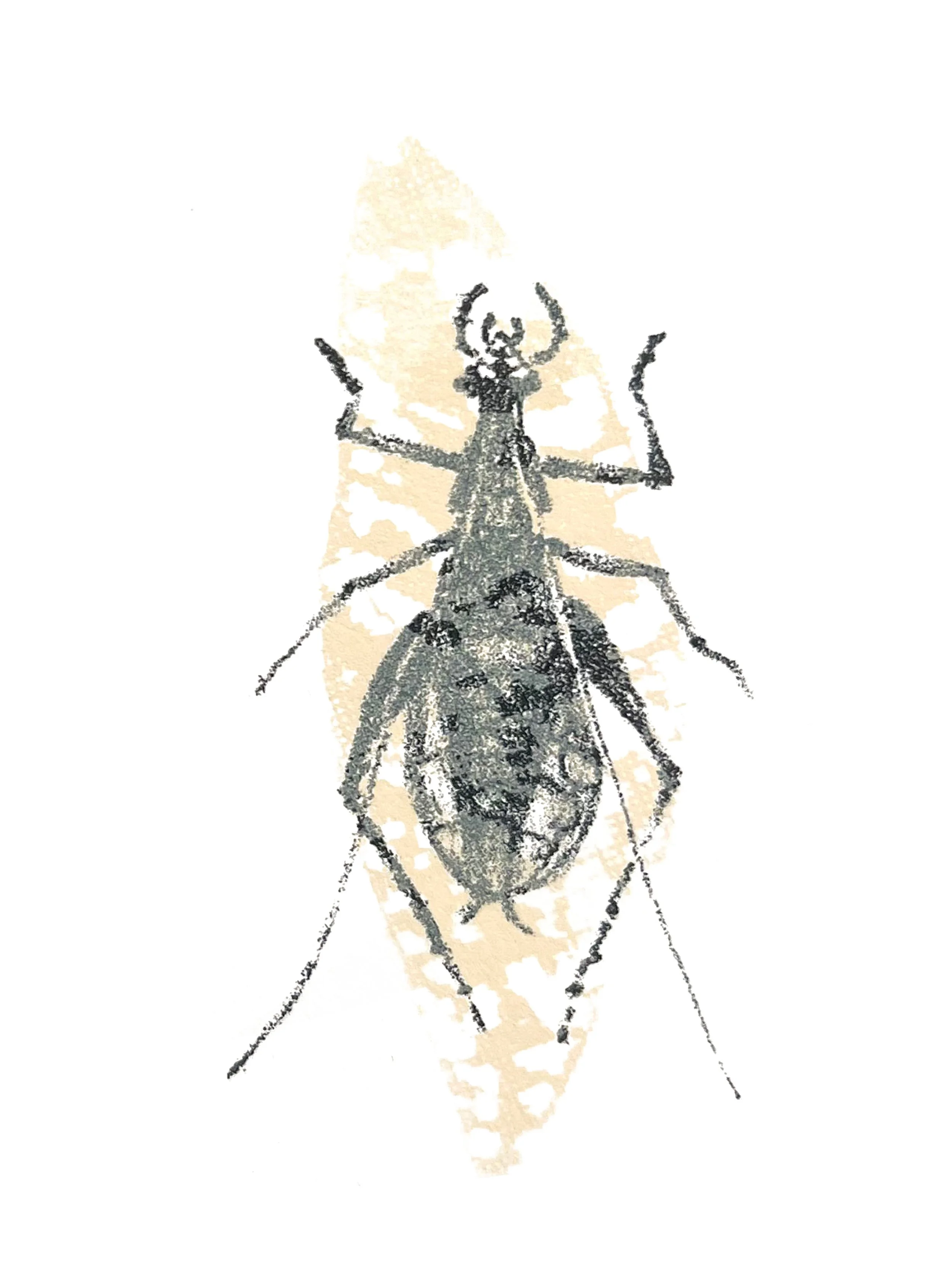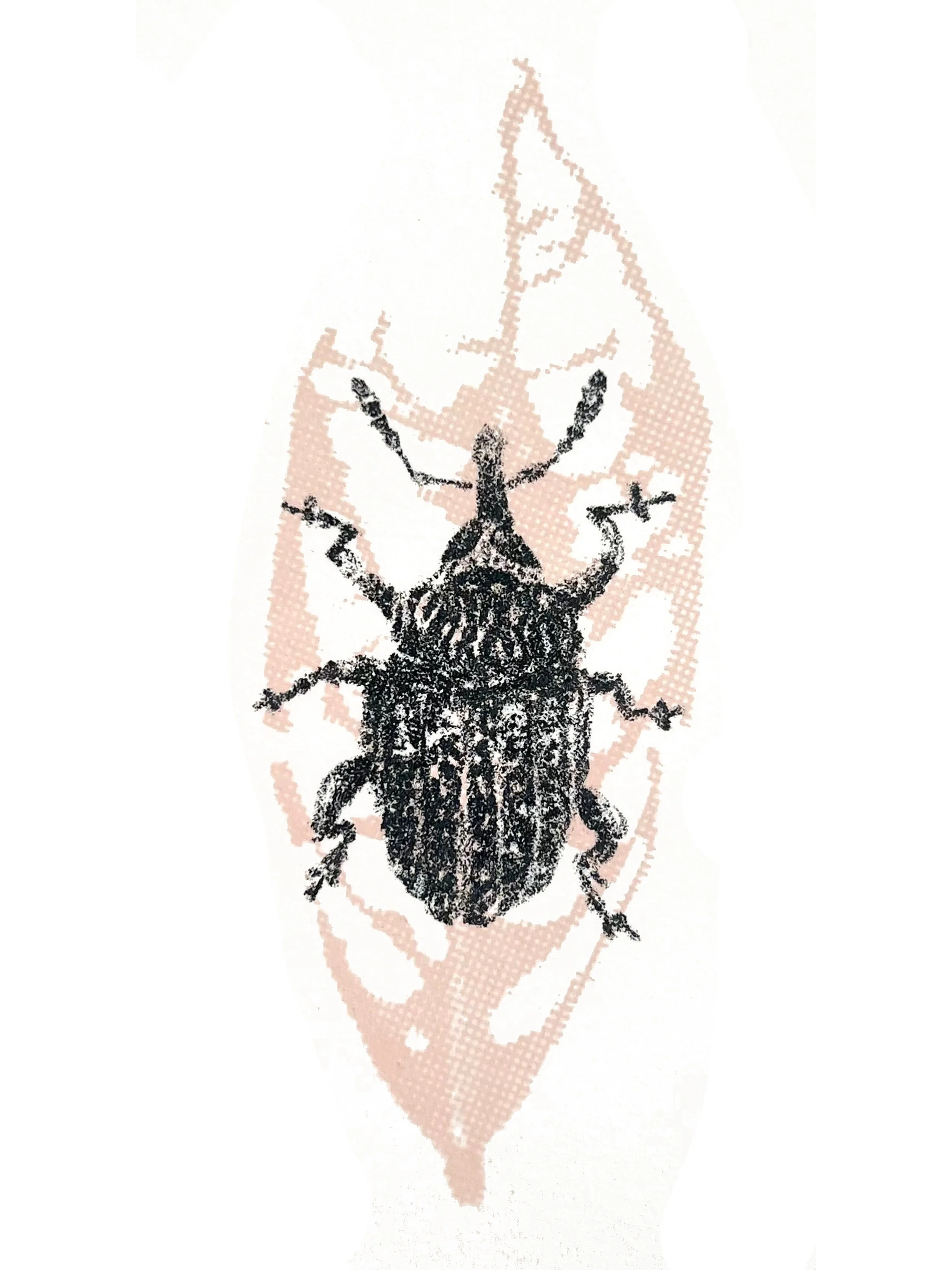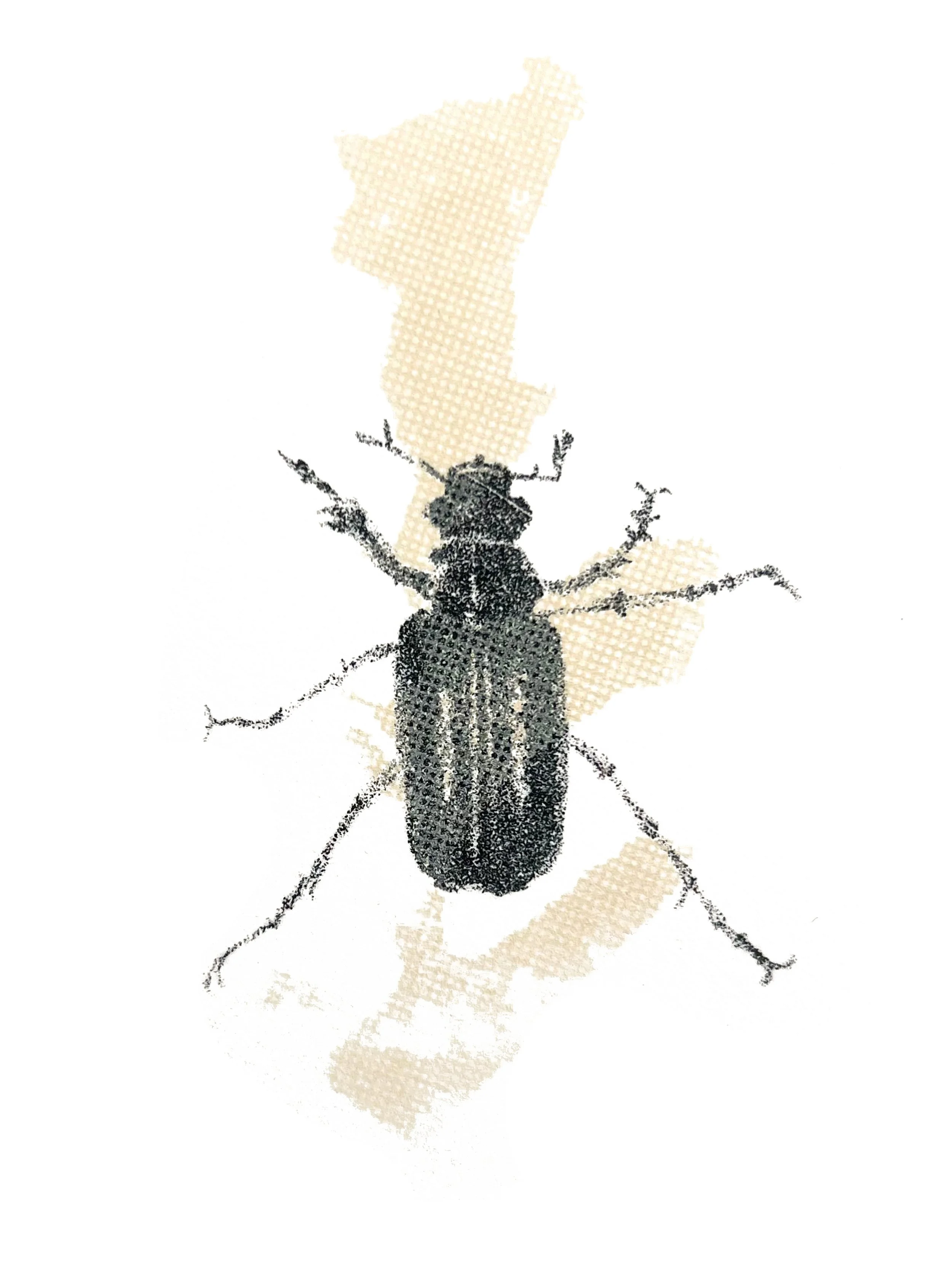 this piece combines lithographic depictions of insects with screen-printed leaves showing their corresponding “tracks”, exploring how presence can be understood through traces and what remains after something has moved on- inviting reflection on perception, memory, and the unseen patterns left in nature.